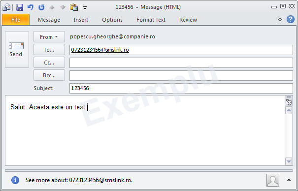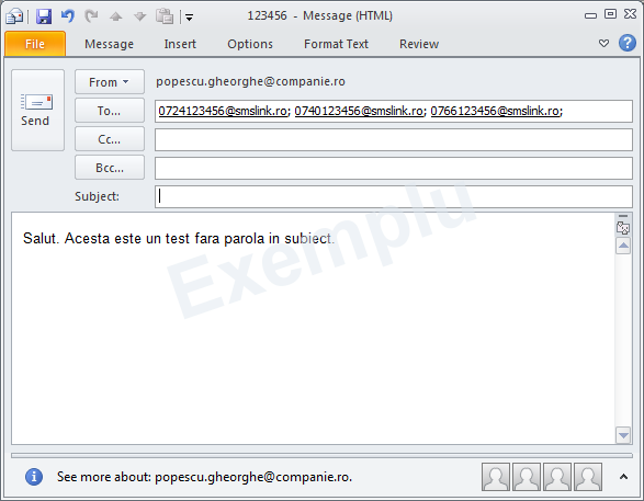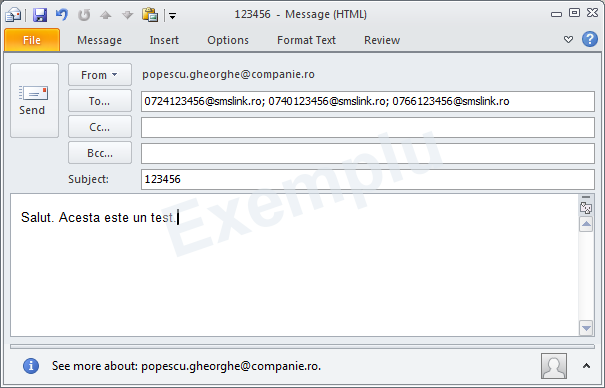 Exemple Mail to SMS cu destinatarii in campul To al e-mail-ului