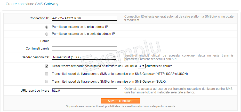 At this step, you can also define the number of failed authentication attempts after which the Connection ID will be deactivated. It is recommended to use this option to prevent any brute-force attack attempts on the SMS Gateway. This way, you will also be notified if multiple password attempts have been made, allowing you to change the Connection ID and password in time.